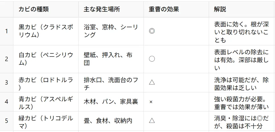 1.1. カビの種類別「重曹の効果」を表でチェック!