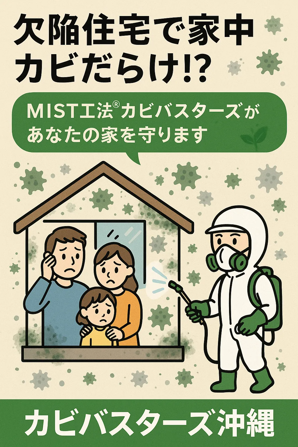 欠陥住宅で家中カビだらけ!?MIST工法®カビバスターズ沖縄があなたの家を守ります 🌿