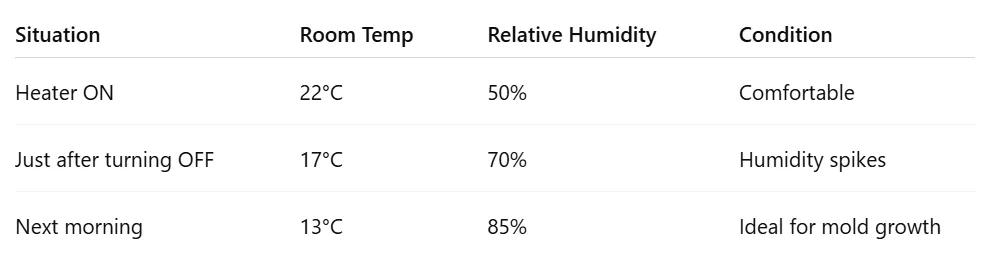The period right after heating stops is when mold risk peaks.