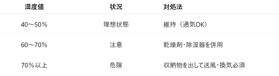 📊 湿度の目安と対処表